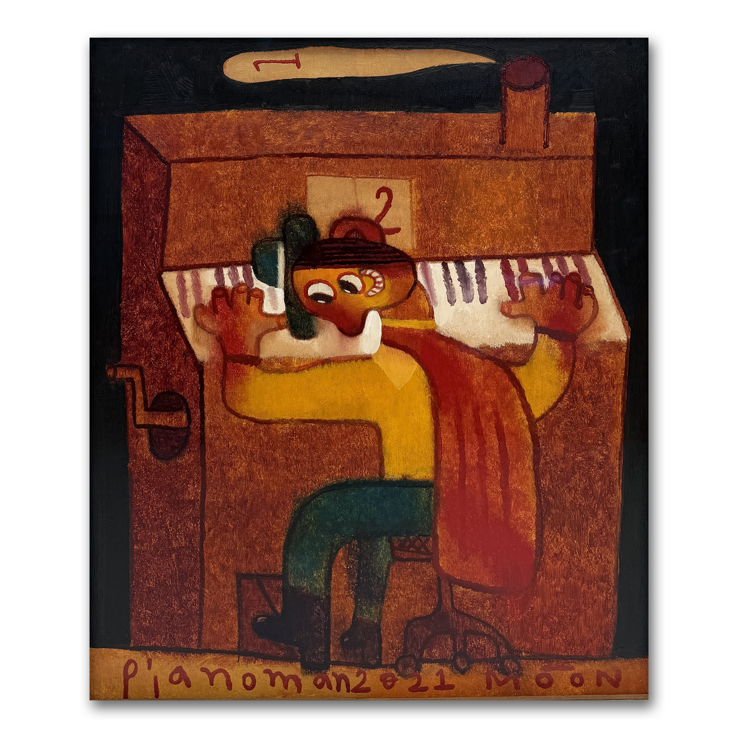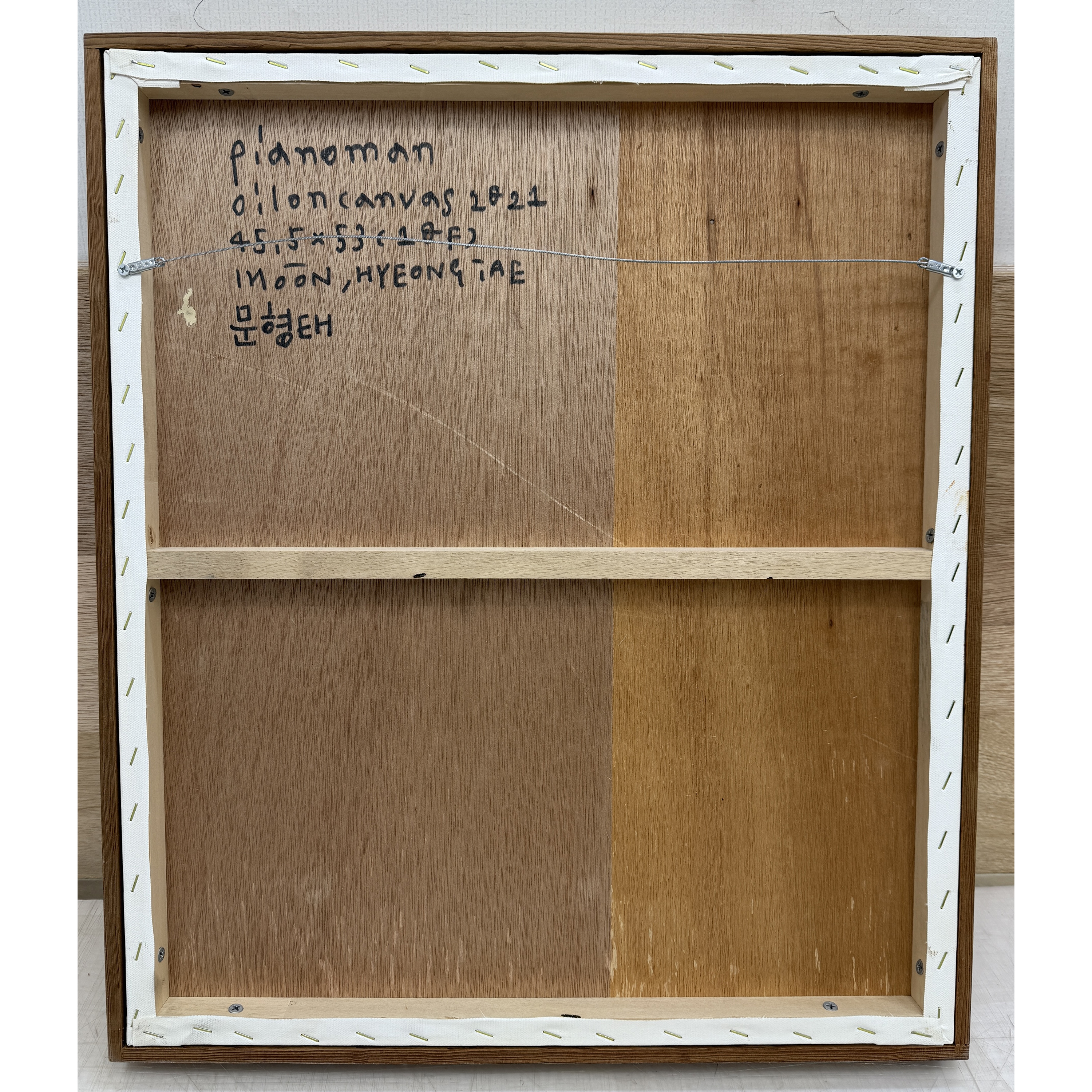 일상의 단편들을 화면에 담아내는 문형태 작가의 작품은 따뜻한 색감과 독창적인 조형 언어로 많은 사랑을 받고 있습니다. 그는 표현주의와 초현실주의로 분류되는 코브라 그룹(CoBrA) 그룹과 자유분방한 회화를 제작한 장 뒤뷔페(Jean Dubuffet)에 관심을 두었습니다. 이들 화가의 영향을 받아 형식에 얽매이지 않고 감정을 직관적으로 표현해낸 그의 회화는 숫자와 기호 속에 관계와 기억의 이야기를 담아 관람객들의 깊은 공감을 자아냅니다. 문형태 작가의 작품에는 화사한 색채와 감정의 내면을 드러내는 얼굴 묘사, 유화를 사용하여 질감이 부각됩니다. 특히 작품의 질감은 황토와 물을 섞어 캔버스에 칠하고 이를 다시 걷어낸 후 그림을 그리는 작가의 독특한 작업 방식의 결과입니다.